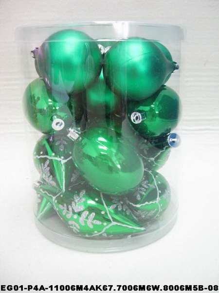 set of 18pc Green Mat Painted Shyny Decorated Glitter Balls