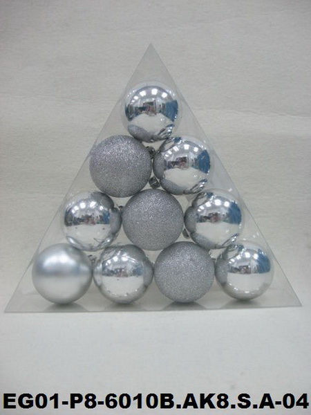 set of 10pc 2.5" Sylver Mat Painted Shiny Decorated Glitter Balls