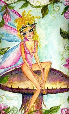 Ceramic Art Tile > A Flower Garden Fairy by Sherri Baldy 8"x10" Ceramic Art Tile with recessed hangers for tabletop or wall hanging purposes