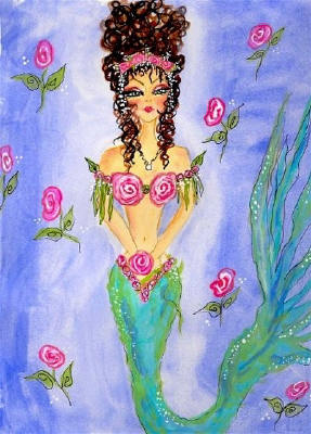 A Sea Rose by Sherri Baldy 8"x10" Ceramic Art Tile with recessed hangers for tabletop or wall hanging purposes