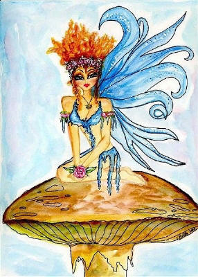 Blue Bell Fairy by Sherri Baldy 8"x10" Ceramic Art Tile with recessed hangers for tabletop or wall hanging purposes