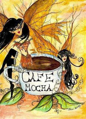 Café Mocha by Sherri Baldy 8"x10" Ceramic Art Tile with recessed hangers for tabletop or wall hanging purposes