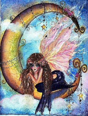 Ceramic Art Tile > Fairy Moon Drops by Sherri Baldy 8"x10" Ceramic Art Tile with recessed hangers for tabletop or wall hanging purposes
