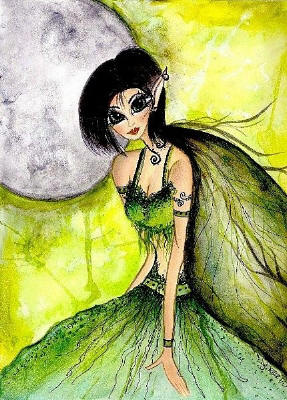 Pixie Moon Fairy by Sherri Baldy 8"x10" Ceramic Art Tile with recessed hangers for tabletop or wall hanging purposes