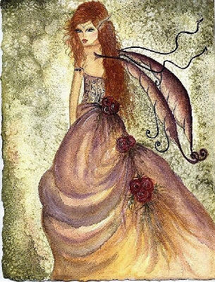 Winter Rose Fairy by Sherri Baldy 8"x10" Ceramic Art Tile with recessed hangers for tabletop or wall hanging purposes