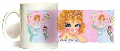 Art Mug > Moon Mermaid Kitty Mug by Artist Sherri Baldy 11oz Coffee Mugs Microwave and Dishwasher Safe