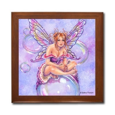 Ceramic Tile Box > Bubbles Ceramic Tile Box by Artist Selina Fenech Dark wood jewely box measures 5 1/8" x 5 1/8" x 2 3/4" and is fully lined on the inside