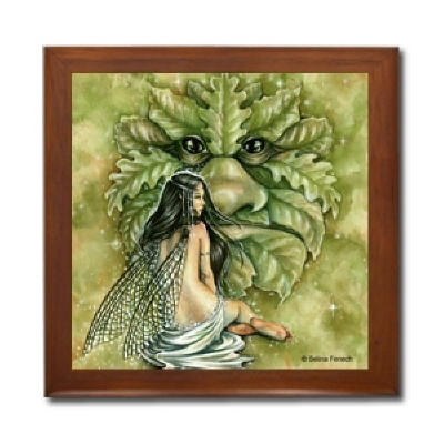 Ceramic Tile Box > Greenmans Bride Ceramic Tile Box by Artist Selina Fenech Dark wood jewely box measures 5 1/8" x 5 1/8" x 2 3/4" and is fully lined on the inside