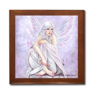 Ceramic Tile Box > Keeper Of Secrets Ceramic Tile Box by Artist Selina Fenech Dark wood jewely box measures 5 1/8" x 5 1/8" x 2 3/4" and is fully lined on the inside