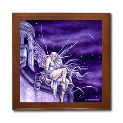 Ceramic Tile Box > Stardust Ceramic Tile Box by Artist Selina Fenech Dark wood jewely box measures 5 1/8" x 5 1/8" x 2 3/4" and is fully lined on the inside