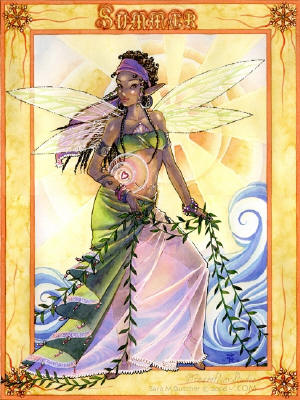 Summer by Sara M. Butcher 8"x10" Ceramic Art Tile with recessed hangers for tabletop or wall hanging purposes