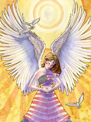 Ceramic Art Tile > US Angel by Sara M. Butcher 8"x10" Ceramic Art Tile with recessed hangers for tabletop or wall hanging purposes