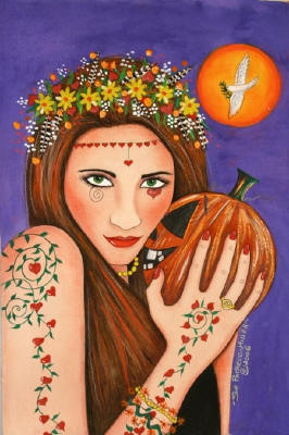 Best Pumpkin Sprite by Sue Miller 8"x10" Ceramic Art Tile with recessed hangers for tabletop or wall hanging purposes