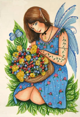 Blue Fairy by Sue Miller 8"x10" Ceramic Art Tile with recessed hangers for tabletop or wall hanging purposes