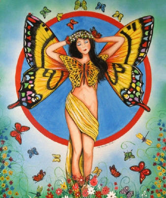 Ceramic Art Tile > Princess Butterfly by Sue Miller 8"x10" Ceramic Art Tile with recessed hangers for tabletop or wall hanging purposes
