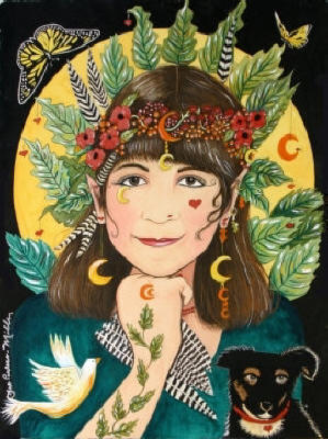 Sister Moon by Sue Miller 8"x10" Ceramic Art Tile with recessed hangers for tabletop or wall hanging purposes