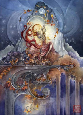 Ceramic Art Tile > Autumn Foxfire by Stephanie Law 8"x10" Ceramic Art Tile with recessed hangers for tabletop or wall hanging purposes