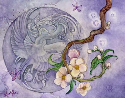 Ceramic Art Tile > Dragon Phoenix by Stephanie Law 8"x10" Ceramic Art Tile with recessed hangers for tabletop or wall hanging purposes