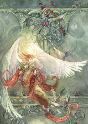 Ceramic Art Tile > The Messenger by Stephanie Law 8"x10" Ceramic Art Tile with recessed hangers for tabletop or wall hanging purposes