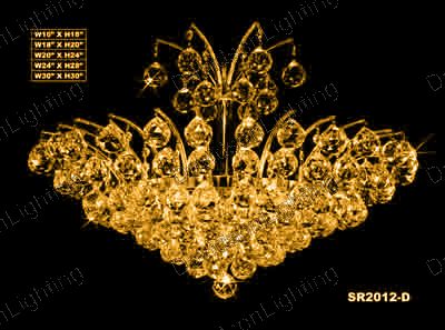 Chandelier 30% lead Crystal # SR2012D16ag / Dimentions: w31" x h16" / Frame color: polished chrome, also available in 24k gold frame / Contains 12x60w candeliabra bulbs - included / Availability: in stock 2-3 days
