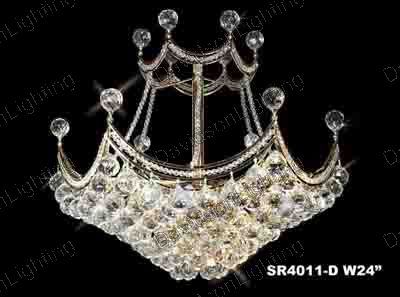 Chandelier 30% lead Crystal # SR4011Da / Dimentions: W24"XH24" / Frame color: polished chrome, also available in 24k gold frame / Contains 11x60w candeliabra bulbs - included / Availability: in stock 2-3 days
