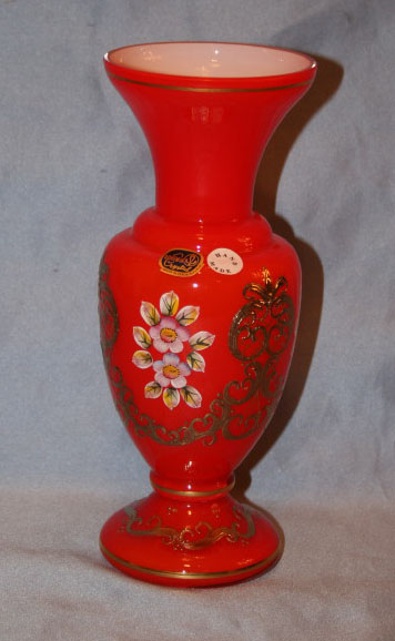 24k Gold Plated Hand Made Hand Painted Bohemian Czech Republic Flower Vase Size 8 in Glass Hand-made Made in Czech Republic