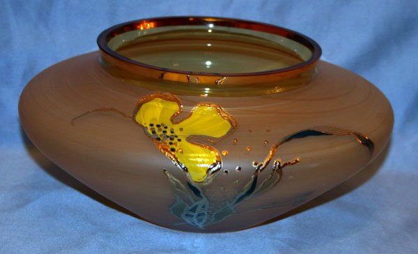 24k Gold Plated Hand Made Hand Painted Mouth Blown Bohemian Czech Republic Flower Vase