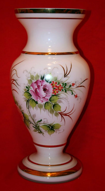 24k Gold Plated Hand Made Hand Painted Bohemian Czech Republic Flower Vase Size 16 in Glass Hand-made Made in Czech Republic