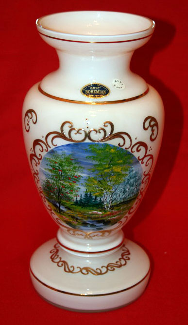 24k Gold Plated Hand Made Hand Painted Bohemian Czech Republic Flower Vase Size 12 in Glass Hand-made Made in Czech Republic