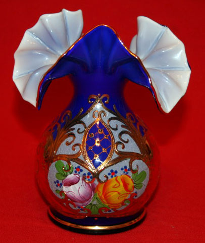 24k Gold Plated Hand Made Hand Painted Bohemian Czech Republic Flower Vase Size 6 in Glass Hand-made Made in Czech Republic