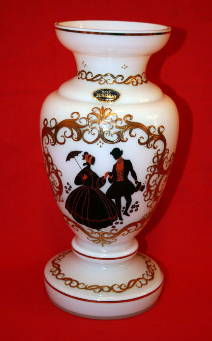 24k Gold Plated Hand Made Hand Painted Bohemian Czech Republic Flower Vase Size 12 in Glass Hand-made Made in Czech Republic