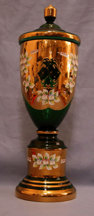 24k Gold Plated Hand Made Hand Painted Bohemian Czech Republic Flower Vase Size 16 in Glass Hand-made Made in Czech Republic