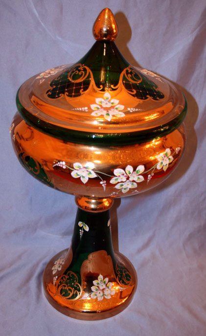 24k Gold Plated Hand Made Hand Painted Bohemian Czech Republic Flower Vase Size 24 in Glass Hand-made Made in Czech Republic