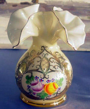 Bohemian 24k Gold Plated Hand Painted Light Yellow Small Enamel Vase